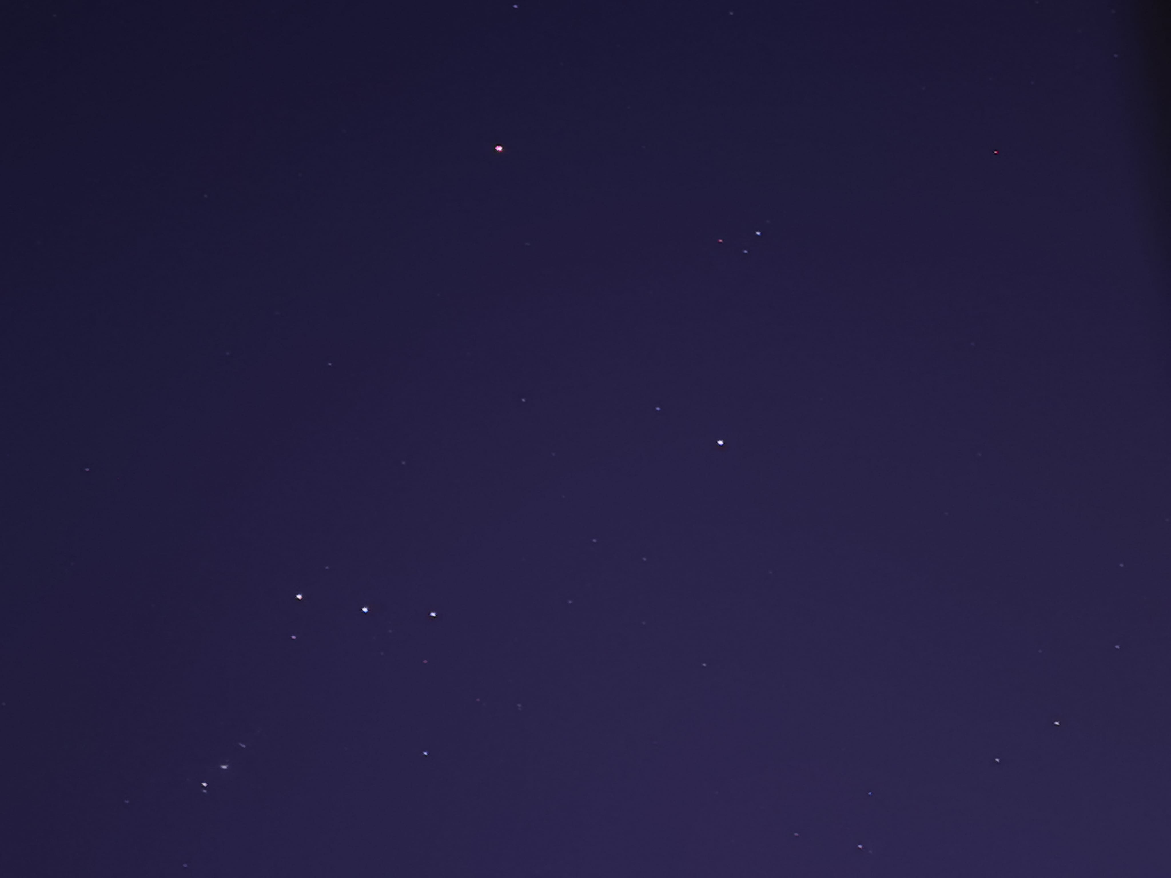 今晚的猎户座和冬季大三角。 纯手持华为P40Pro+拍摄,所谓三星正南,就要过年,最亮眼的就是福禄寿三星,但是大宝剑的柄看起来有些暗淡了,可能是曝光不足?